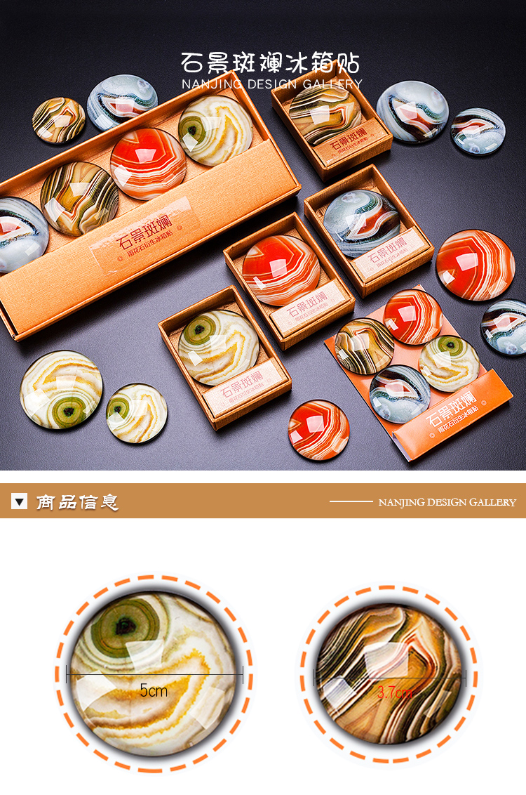 • 商品名称:金陵文创 南京博物院周边旅游伴手礼 雨花石设计冰箱贴石景斑斓