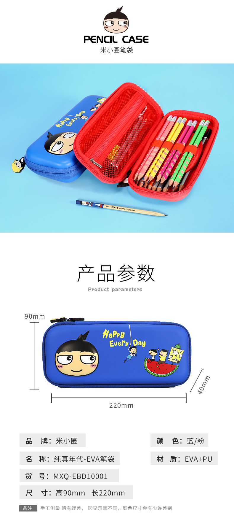 • 商品名称:米小圈笔袋 帆布笔袋 文具盒文具EVA 蓝色 卡通文具盒小学生男女铅笔盒3D大容量防水耐压静音米小圈周边文创 玫红蓝色双色可选