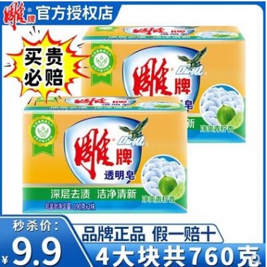 • 商品名称:雕牌洗衣皂深层去渍青柠飘香190g*4块肥皂洗内衣皂柔软不伤衣正品