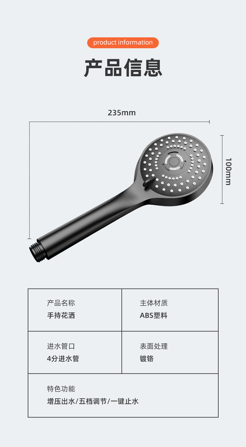 • 商品名称:淋浴花洒喷头套装家用洗澡增压沐浴浴室热水器高压软管龙头卫浴