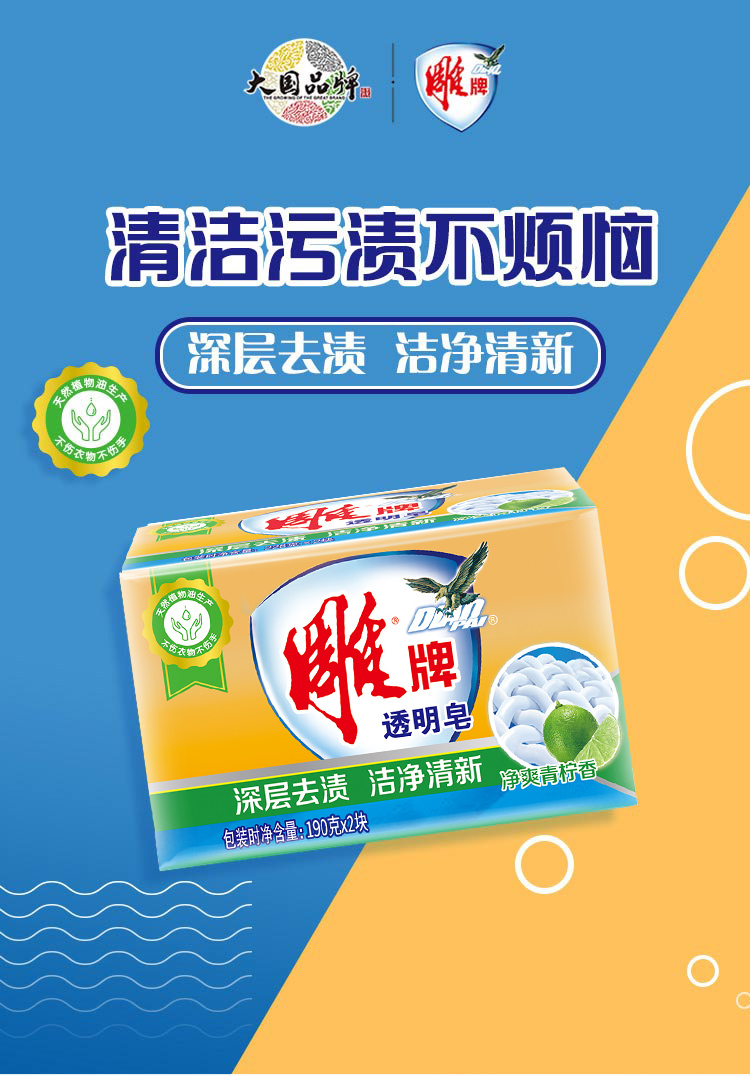 • 商品名称:雕牌洗衣皂深层去渍青柠飘香190g*4块肥皂洗内衣皂柔软不伤衣正品