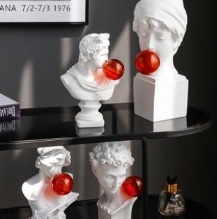 石膏摆件艺术大卫吹泡泡雕塑人像大号家居玄关酒柜样板间软装饰品